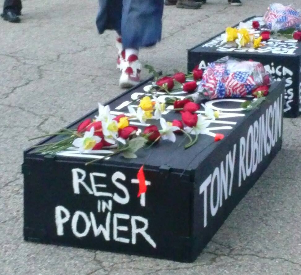 Tony Robinson’s Casket, from an action in Madison, WI.